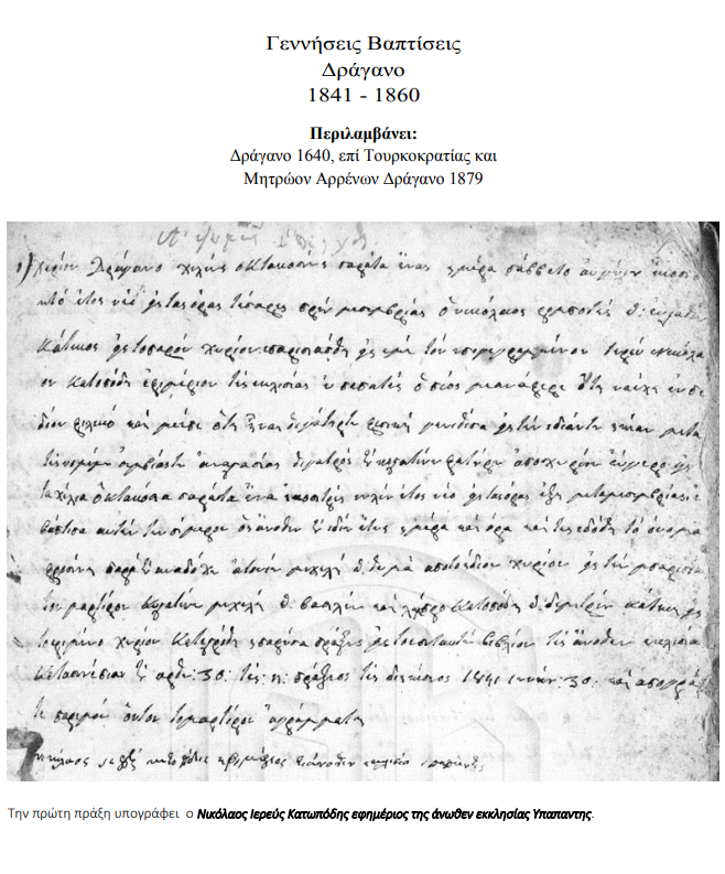 Γεννήσεις Βαπτίσεις Δράγανο 1841-1860