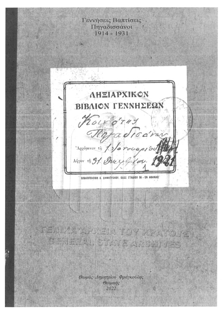 Γεννήσεις Βαπτίσεις Πηγαδισάνοι 1914-1931