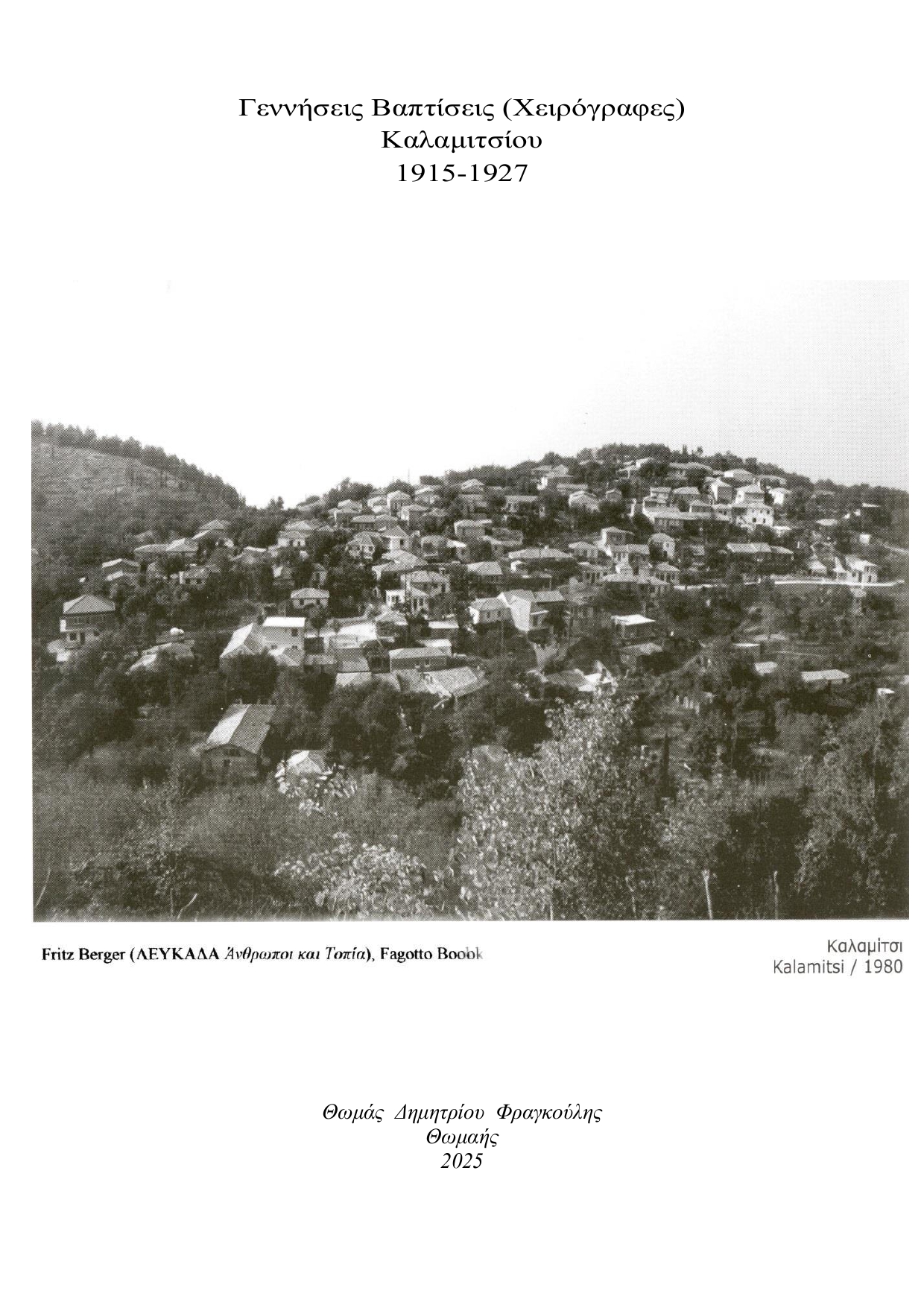 Γεννήσεις Βαπτίσεις (Χειρόγραφες) Καλαμιτσίου 1915-1927 Αρχεία Νομού Λευκάδας Έκδοση Β’ Θωμάς Δημητρίου Φραγκούλης Θωμαής Σύνδεσμος των απανταχού Εγκλουβησιάνων (Ο ΠΡΟΦΗΤΗΣ ΗΛΙΑΣ) και πολιτιστικός σύλλογος Εγκλουβής